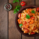 Tomatoes, garlic, oregano, and extra virgin olive oil -