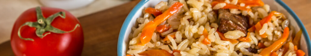 the starchy seeds of an annual southeast Asian cereal grass (Oryza sativa) that are cooked and used for food-